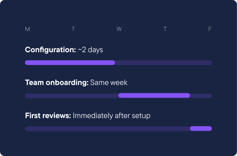 The workload for your team is minimal. Once the required information is gathered during the initial workshop, our team carries out the configuration needed to prepare Siguru for use.